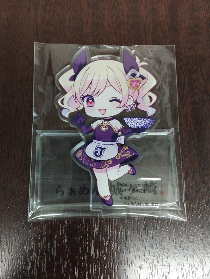 当店のイメージキャラクター『城鳴(しろな)ちゃん』の「誕生3周年記念」にて【数量限定】で作成した「アクリルスタンド」です。